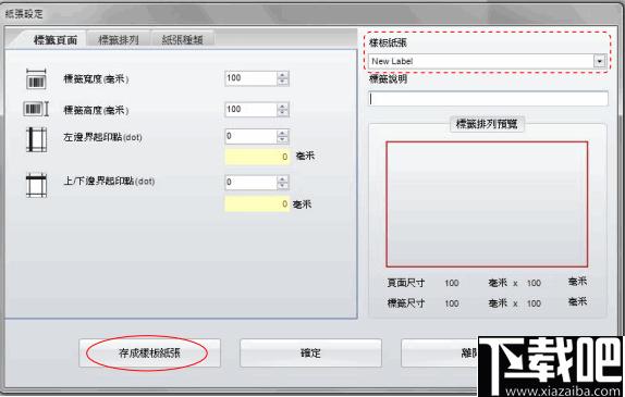 可将标签格式保存成样板,在「标签说明」键入所需的标签名称,按下「存成样板纸张」钮,下次再开启新的标签时,即可在「样板纸张」选取自订的标签格式。