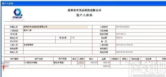 鼠标双击待审批的入库单,弹出资产入库单的详细界面,下拉选择审批结果: