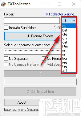 TXTcollector是一款用来合并系统文件的软件,它可以合并计算机中保存的TXT、bat、crg、dat、htm、inl等等文件,具有强大的文件合并功能,不仅合并速度快使用方式还非常简单;这款合并工具可以合并子文件夹下保存的各类文件,用户可以在合并文件之前勾选“包括子文件”选项,之后软件将会自动查找并合并该路径下所有指定文件;TXTcollector能够提升用户合并文件的速度,相比其它合并工具,这款工具可以合并的文件类型较为丰富,基本上能满足用户对系统文件的合并需求。